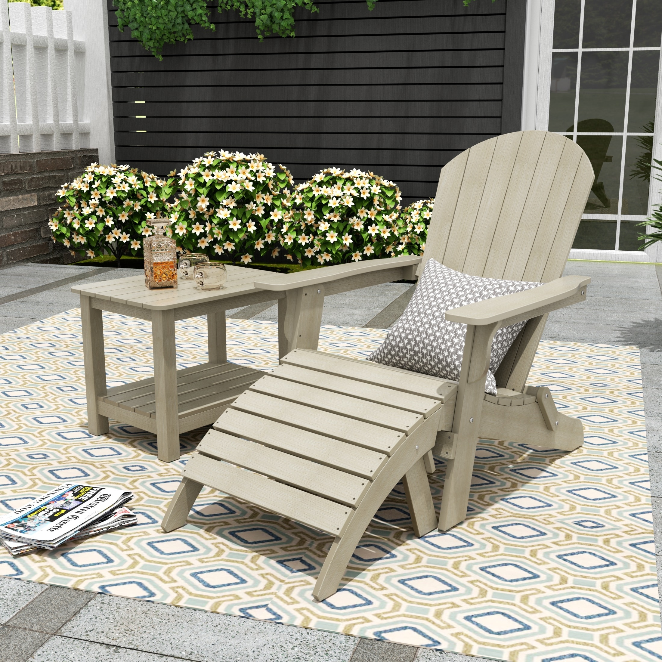 Vineyard HIPS Outdoor Folding Eco-Friendly Seashell Adirondack Chair with Ottoman & Side Table (3-Piece Set)