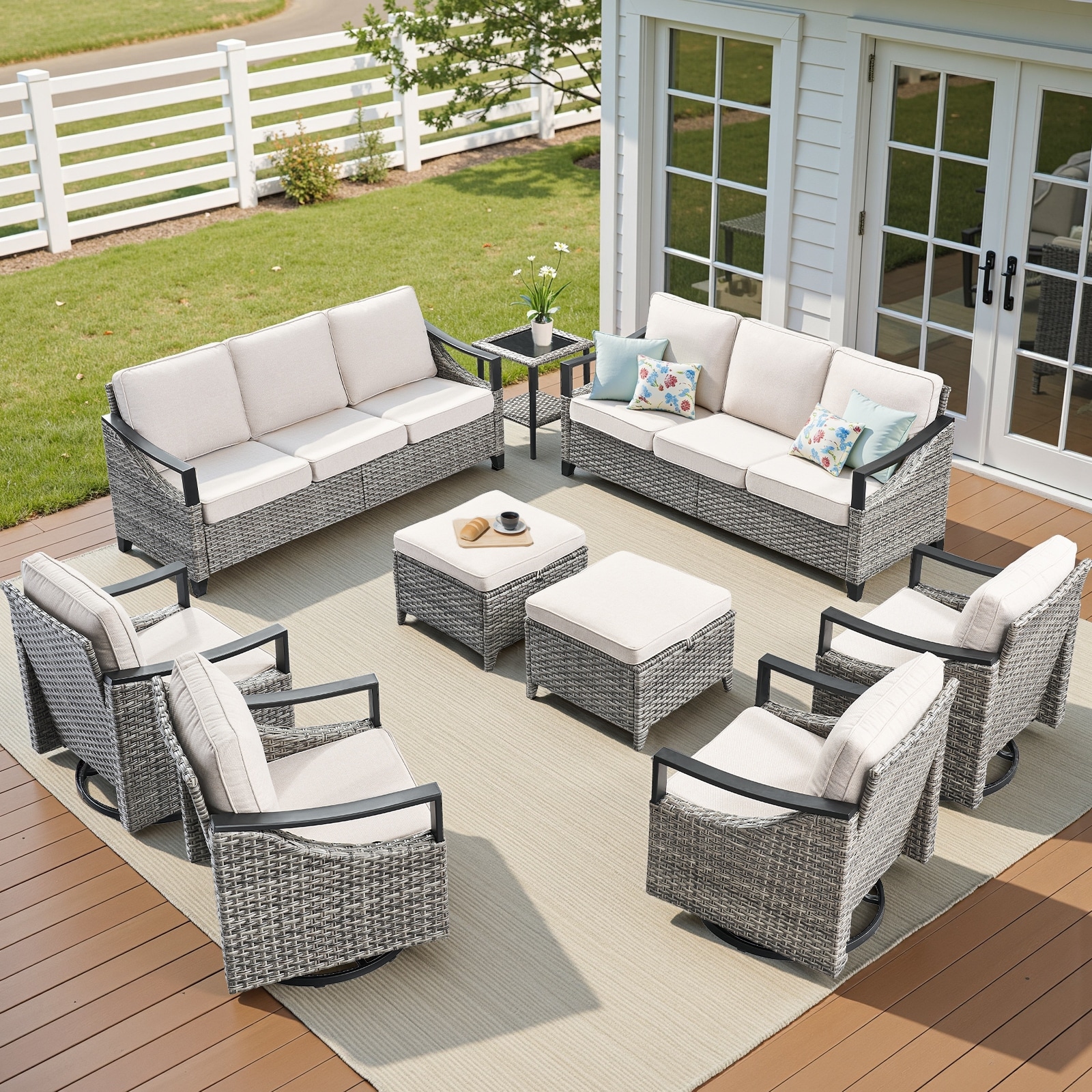 Pocassy 9-Piece Patio Sofa Swivel Chairs Table with Ottoman