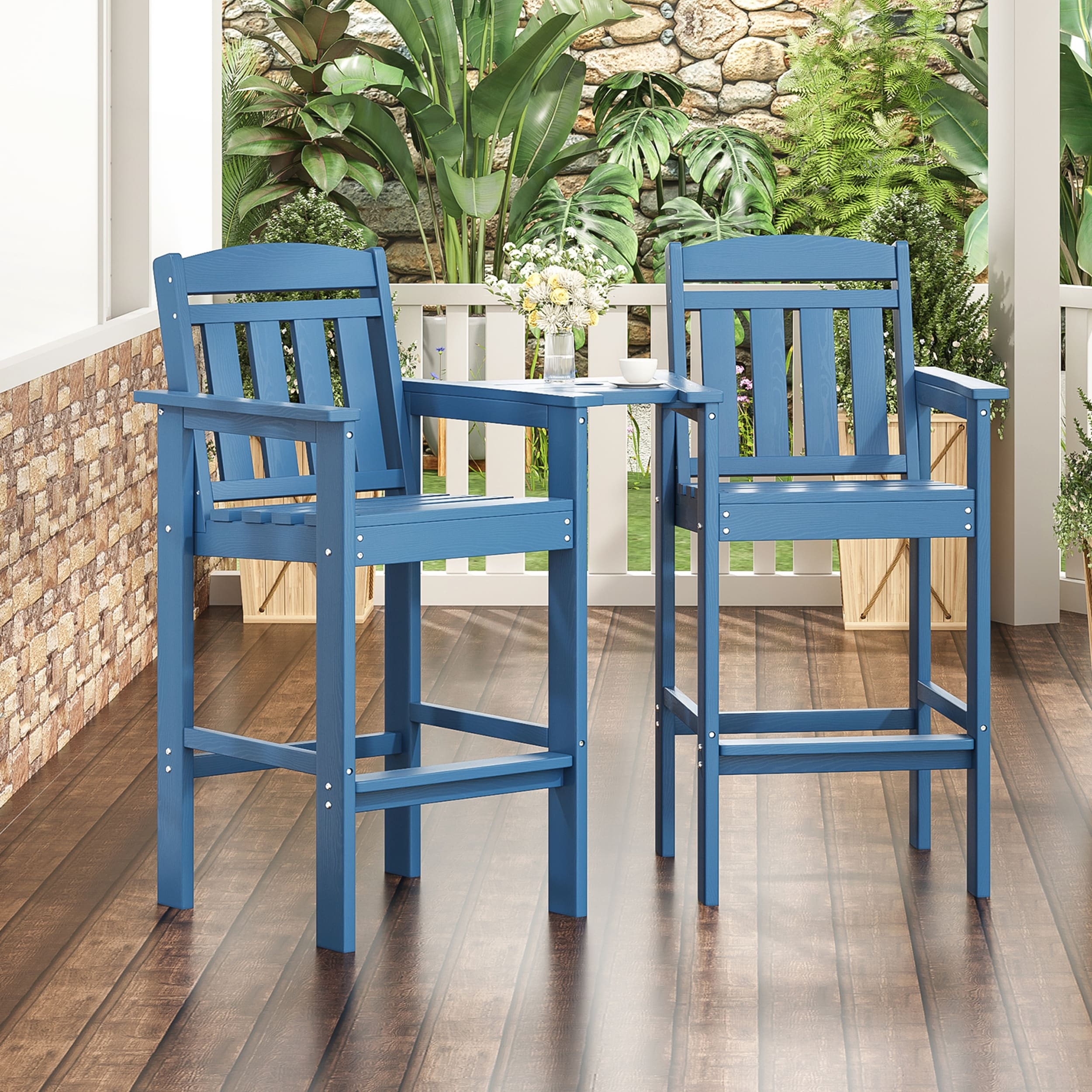 Tall Adirondack Chairs Set of 2 with Connecting Tray for Outdoor Relaxation