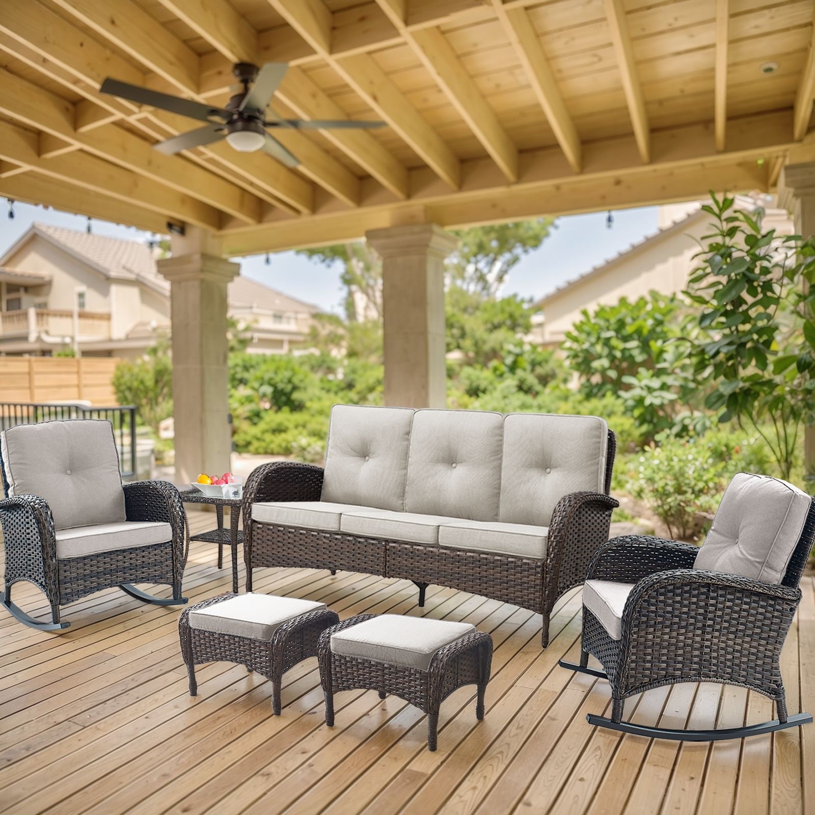 6 Pieces Rocker Chairs Sofa Table Ottomans Brown-Beige - Brown