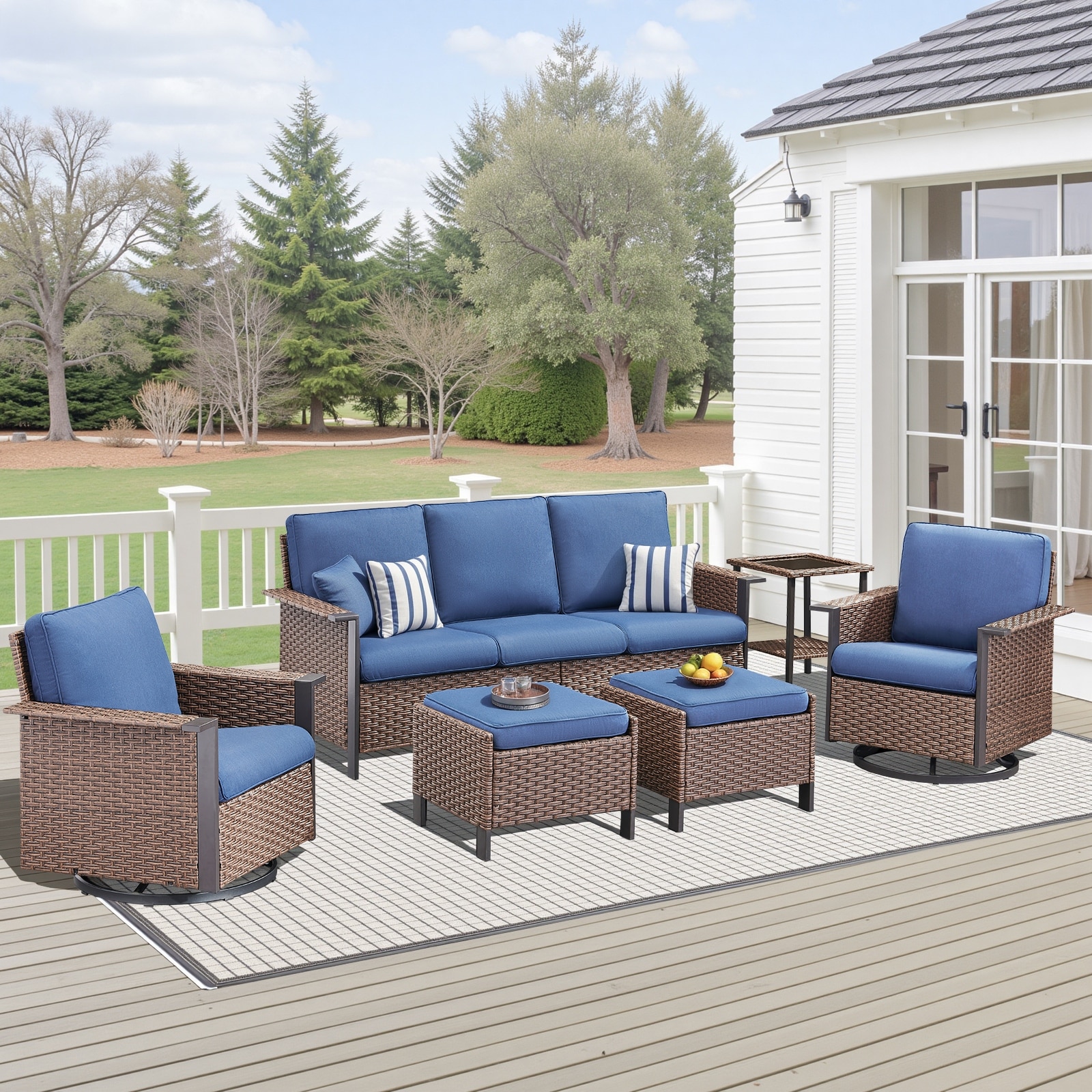 Pocassy Outdoor Wicker 5-Piece Sofa Swivel Chair Table with Ottoman