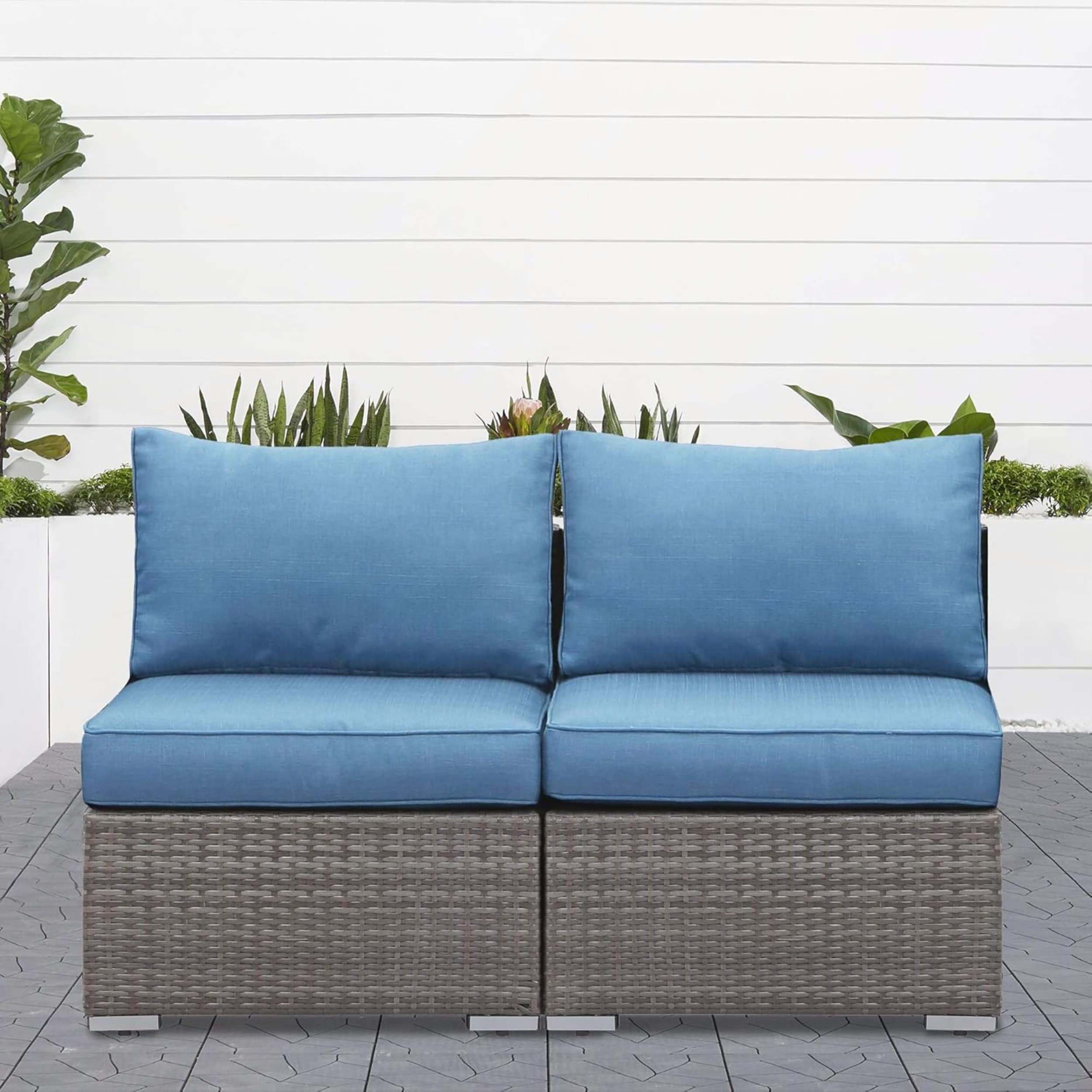 59 Inch 2-Piece Wicker Patio Loveseat Set with Blue Cushions for Versatile Seating