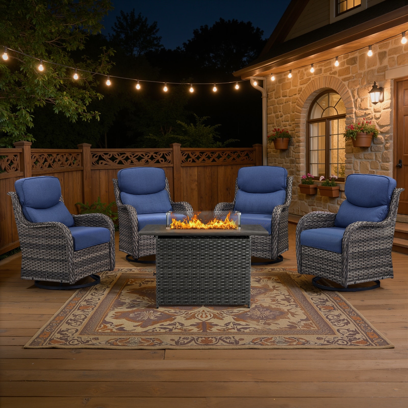 Meyreso 5-Piece Outdoor Patio Wicker Fire Pit 4 person Conversation Set with 5-Inch Thick Cushions