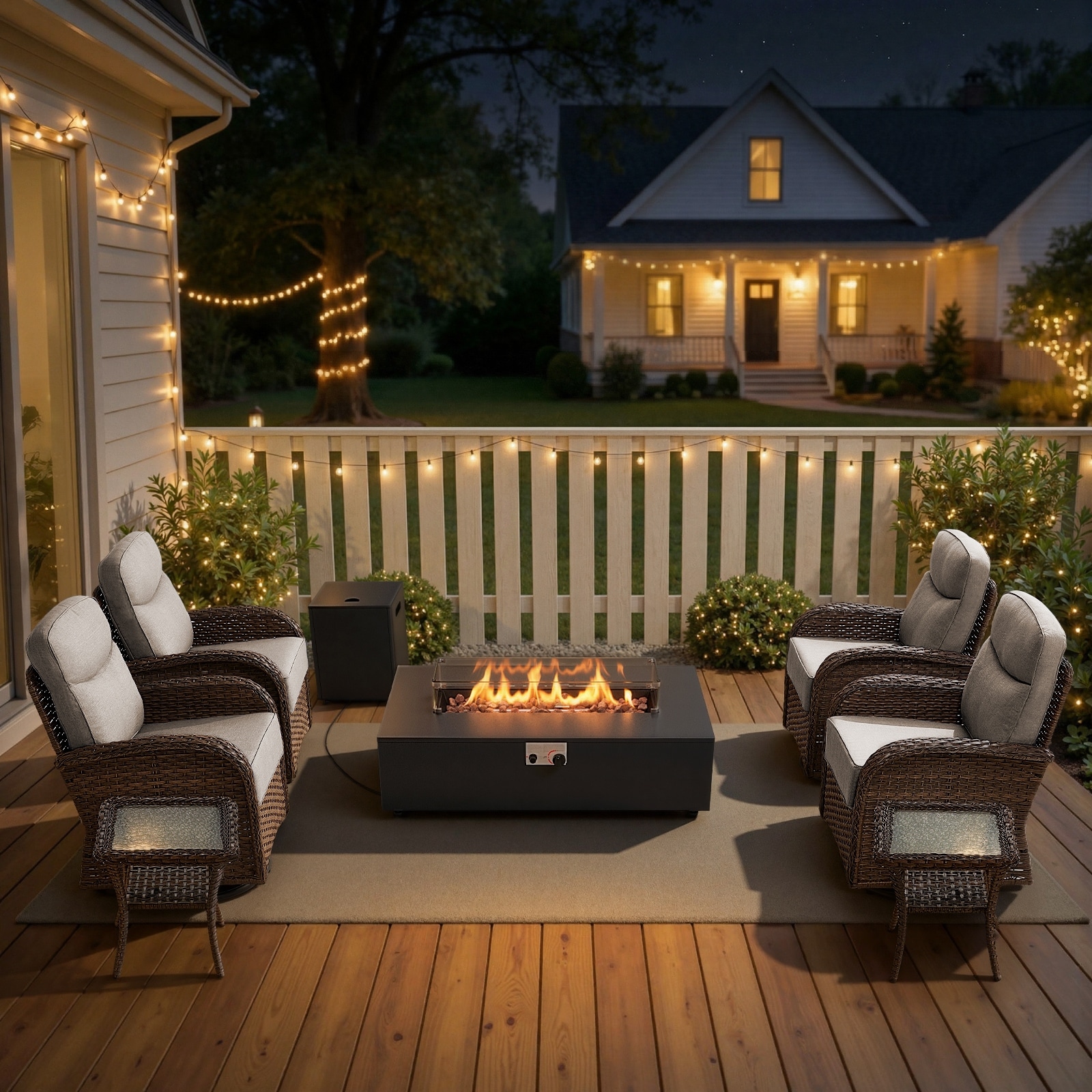 Gymojoy Fire Pit Outdoor Wicker Conversation Furniture Set with 6" Cushions, All-Weather Comfort