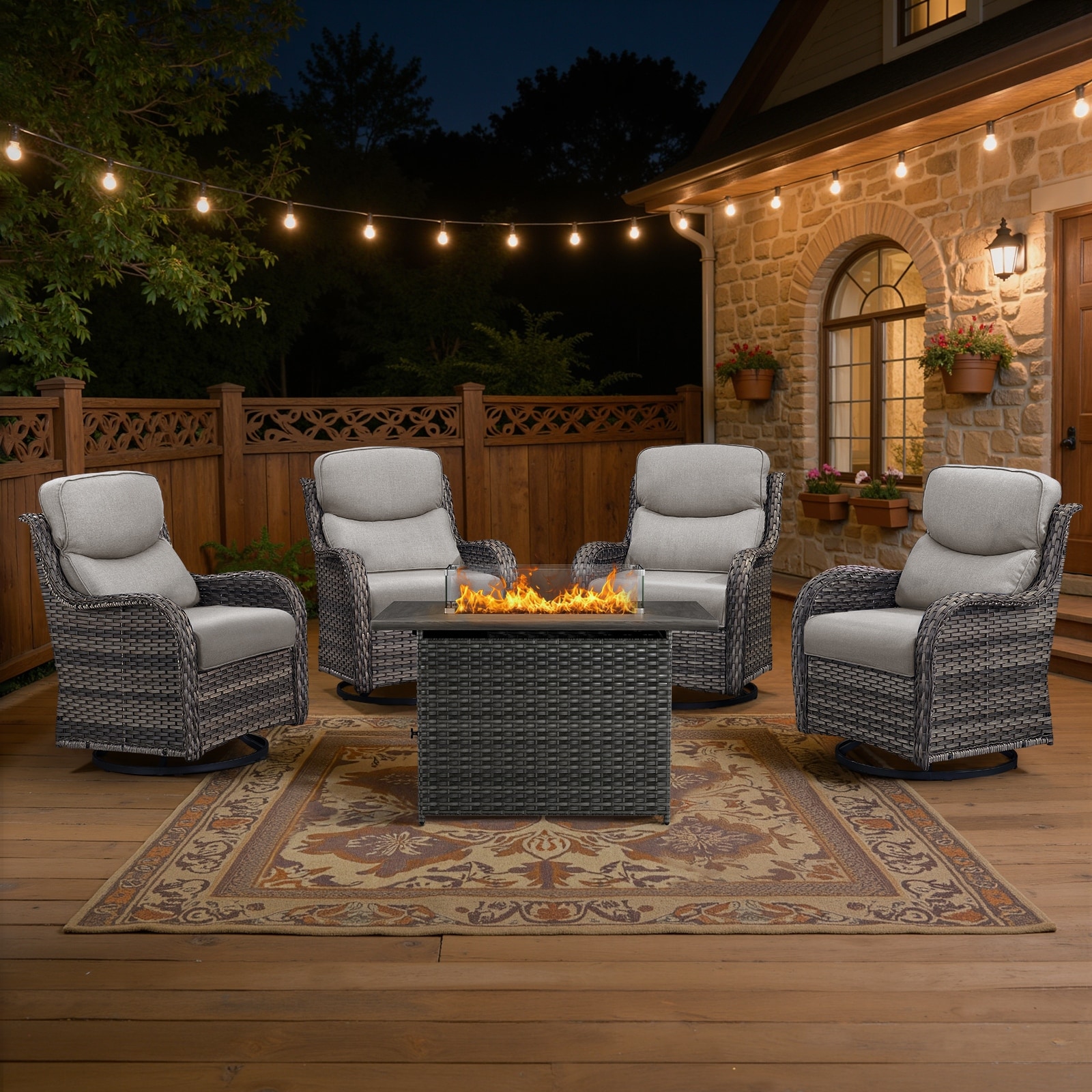 Meyreso 5-Piece Outdoor Patio Wicker Fire Pit 4 person Conversation Set with 5-Inch Thick Cushions