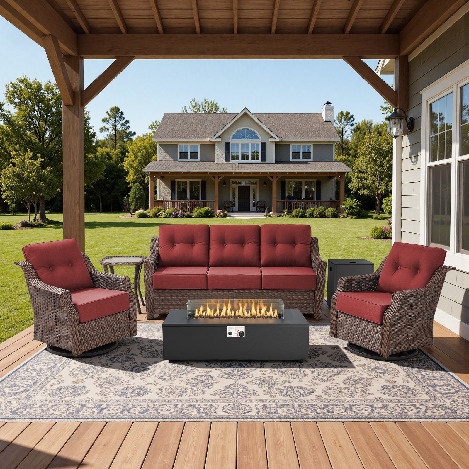 Gymojoy Outdoor Conversation Set, Patio Furniture Set with Fire Pit Table & Sofa & Swivel Chairs