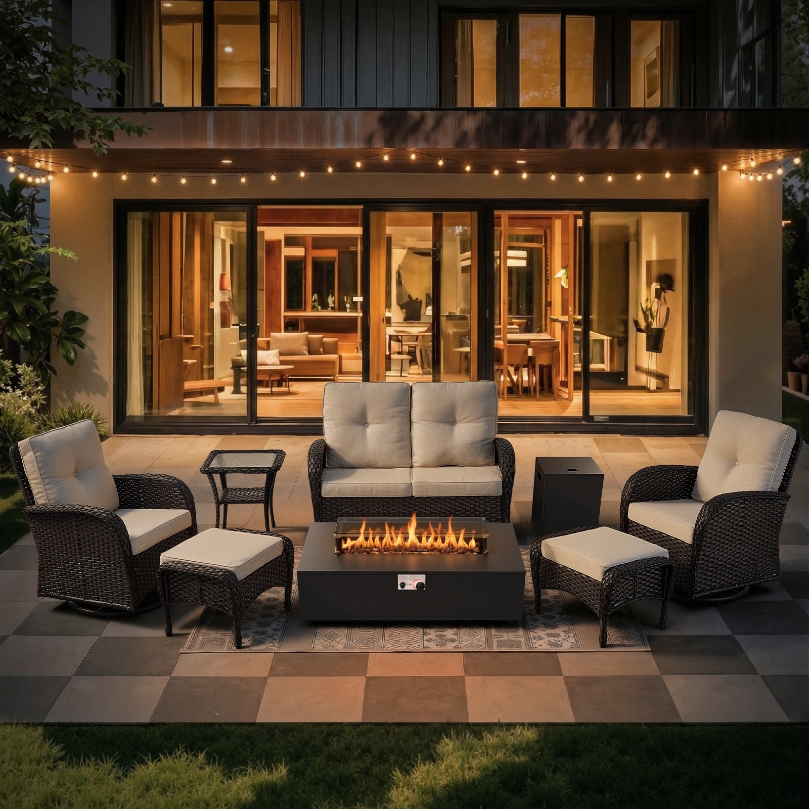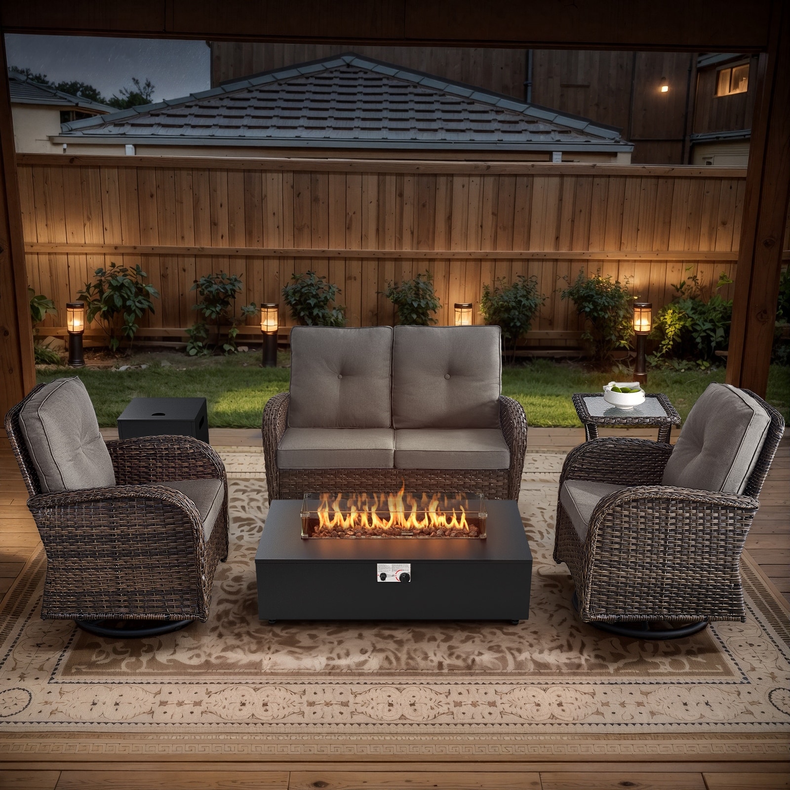Gymojoy Outdoor Fire Pit Conversation Set, Loveseat Glider Sofa & Swivel Chairs Patio Furniture Set