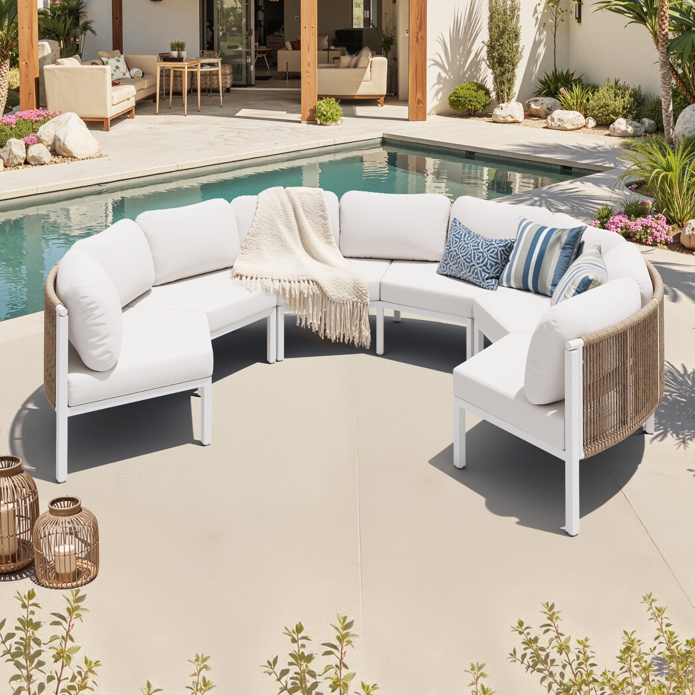 Outdoor Curved Half-moon-shaped Sofa Rattan Sectional Sofa Patio Furniture Set Outdoor Conversation Sets