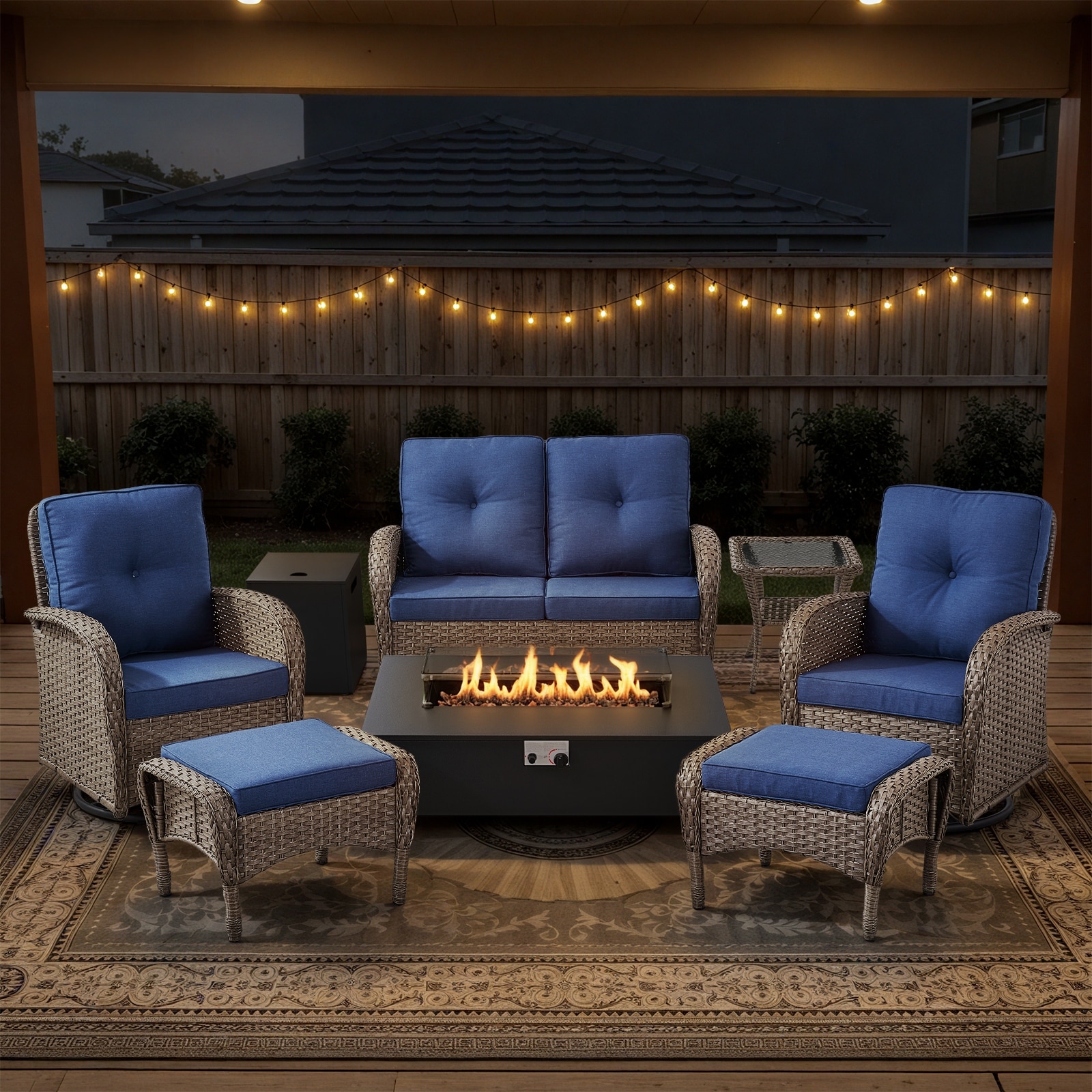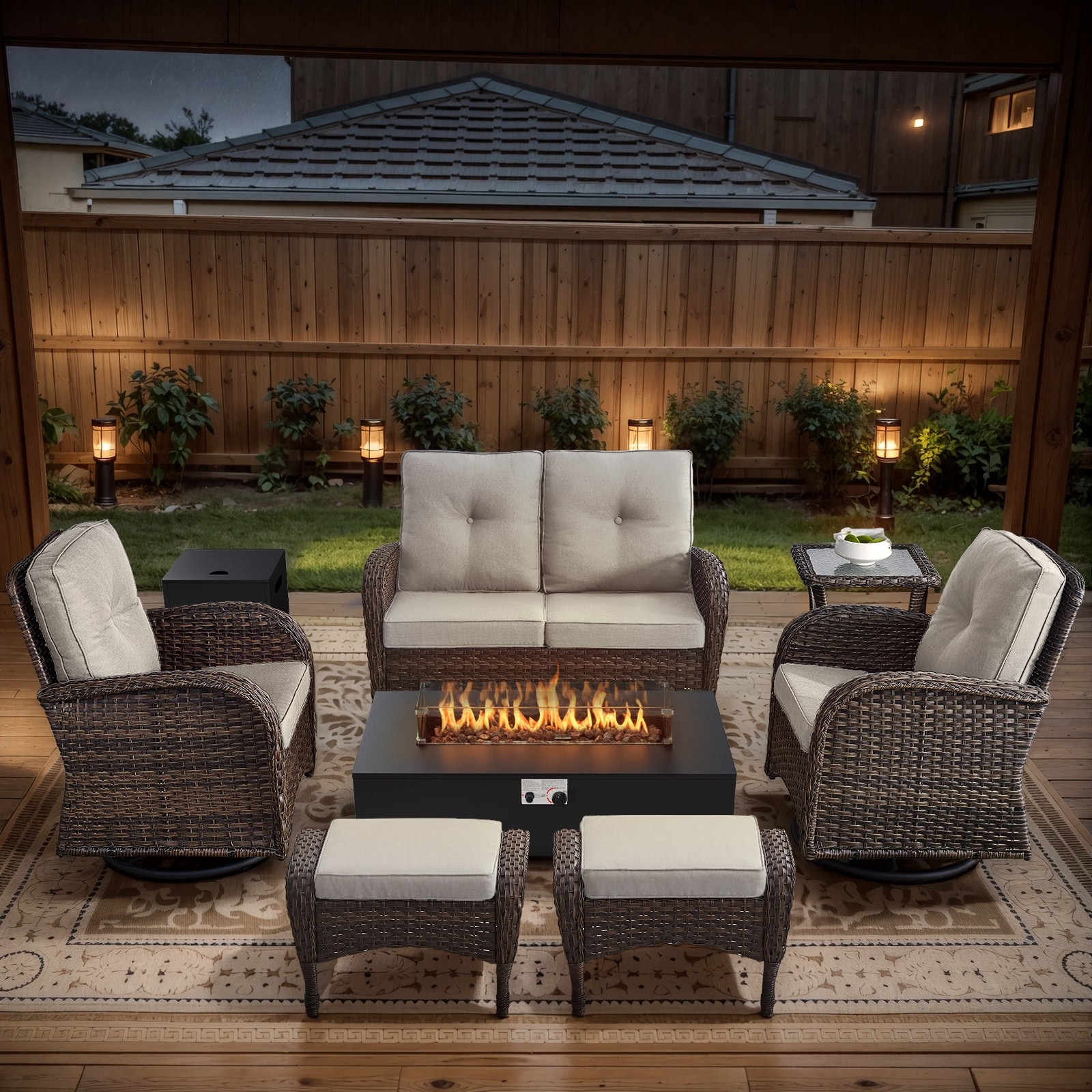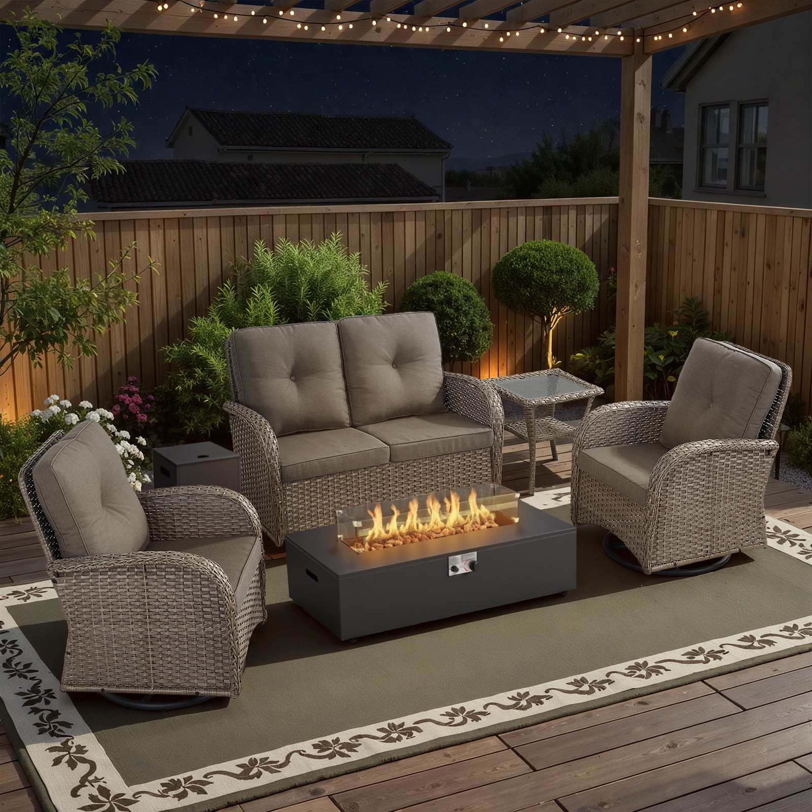 Gymojoy Outdoor Fire Pit Conversation Set, Loveseat Glider Sofa & Swivel Chairs Patio Furniture Set