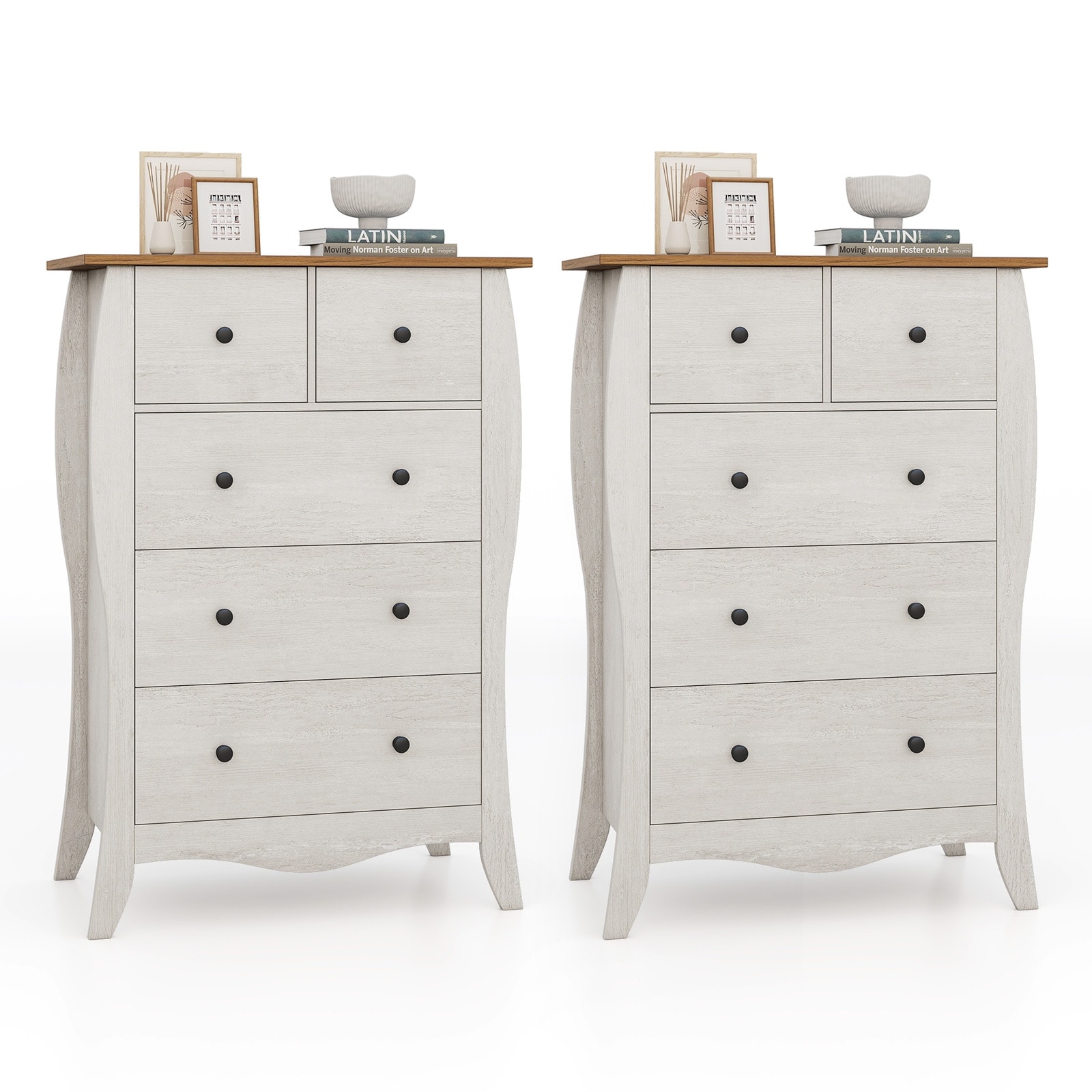 Gymax 2PCS 38'' Farmhouse Chest of Drawers w/ 5 Folding Fabric Drawers