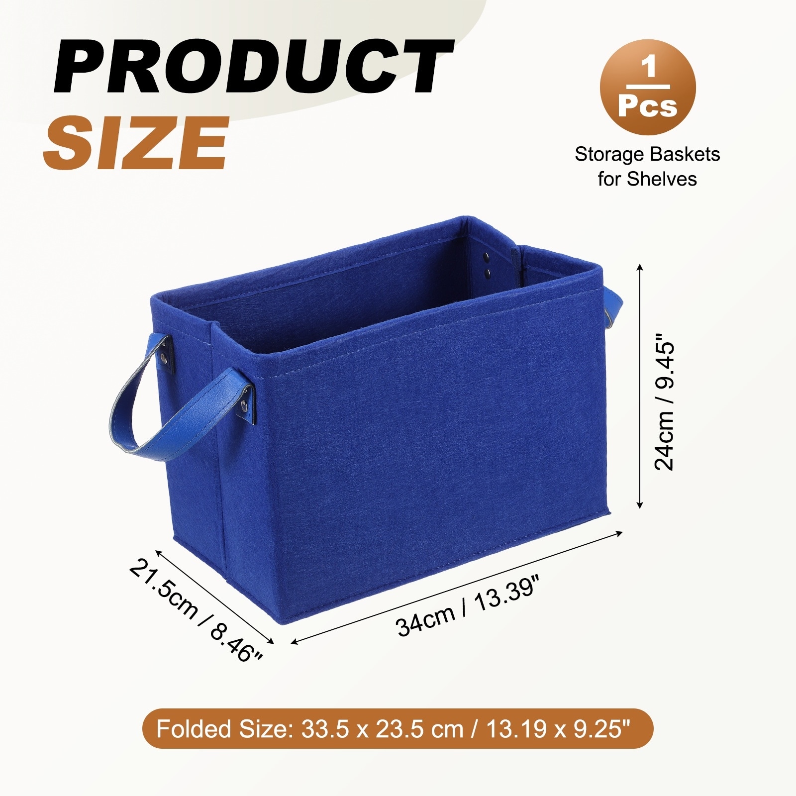 Felt Storage Basket, 13 x 9 x 8 Inch Storage Bins with Pu Handle, Blue - Gray