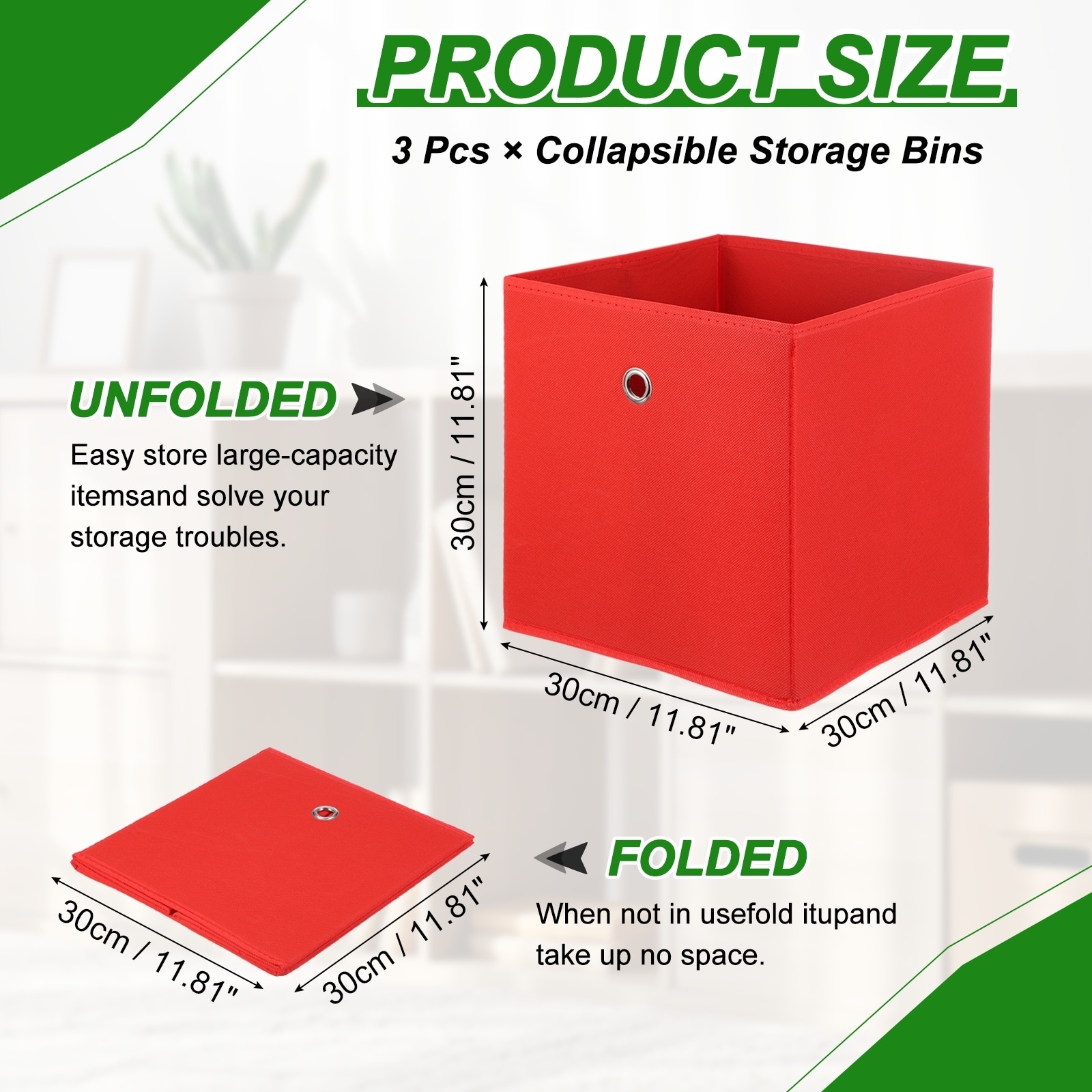 3 Pack Storage Cubes, 12 x 12 x 12 Inch Foldable Fabric Storage Bins, Red - Blue