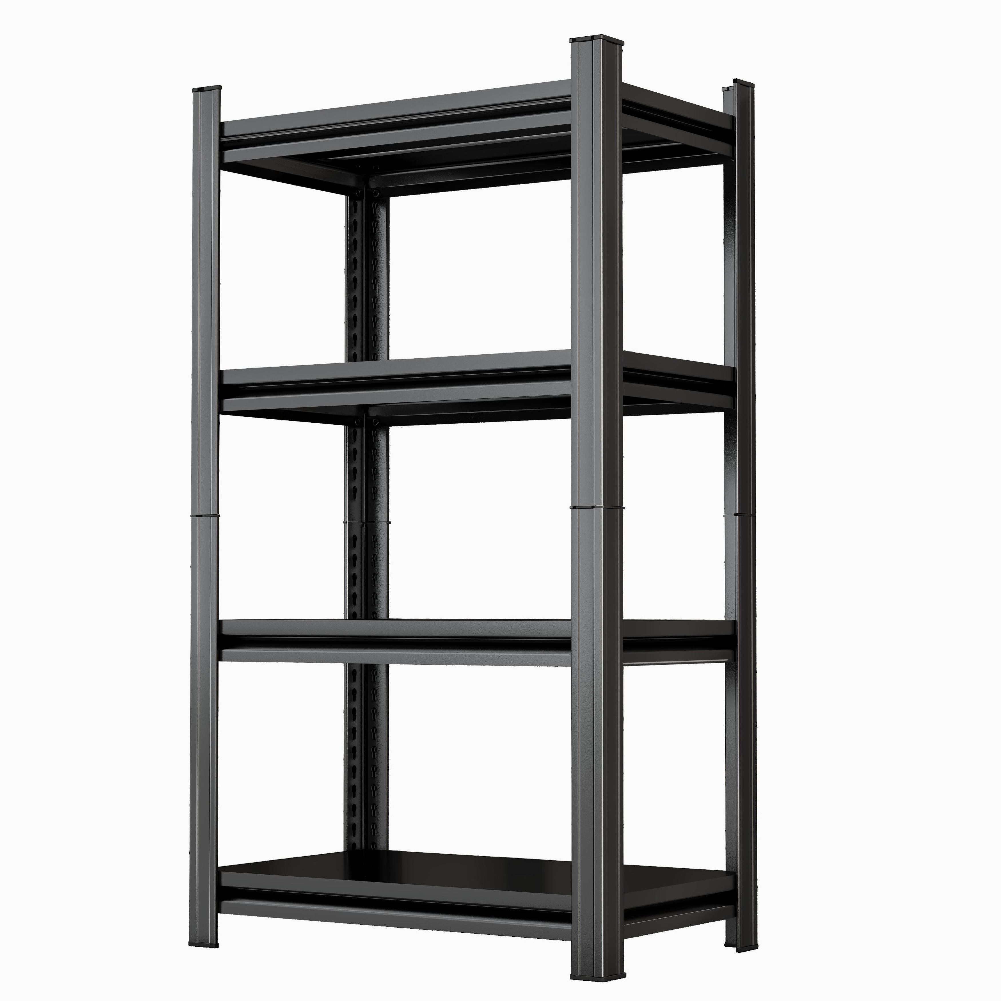 4 Layer Garage Storage Rack, Heavy-Duty Shelving, Adjustable Metal Dividers, Black, Requires Assembly