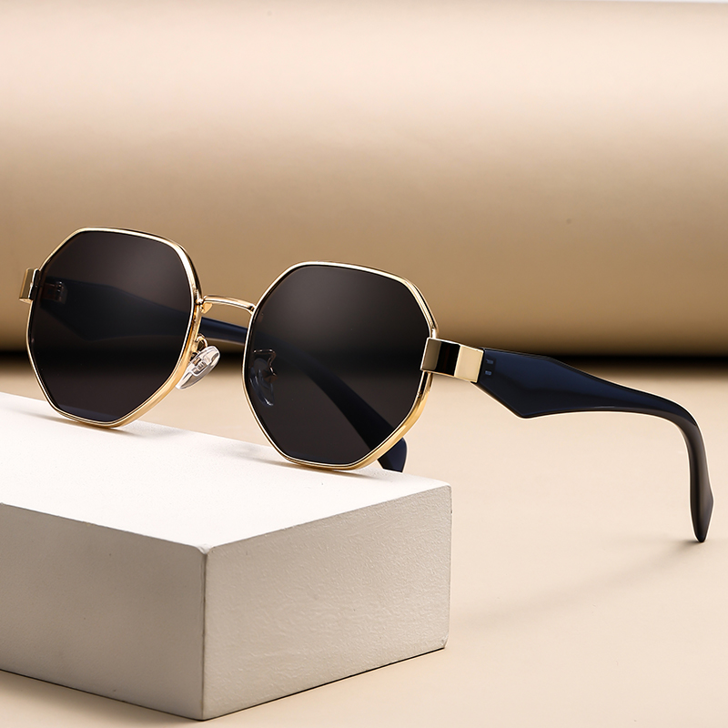 Retro Polygonal Metal Frame Sunglasses For Men Women Luxury Designer Decorative Sun Glasses white Gray