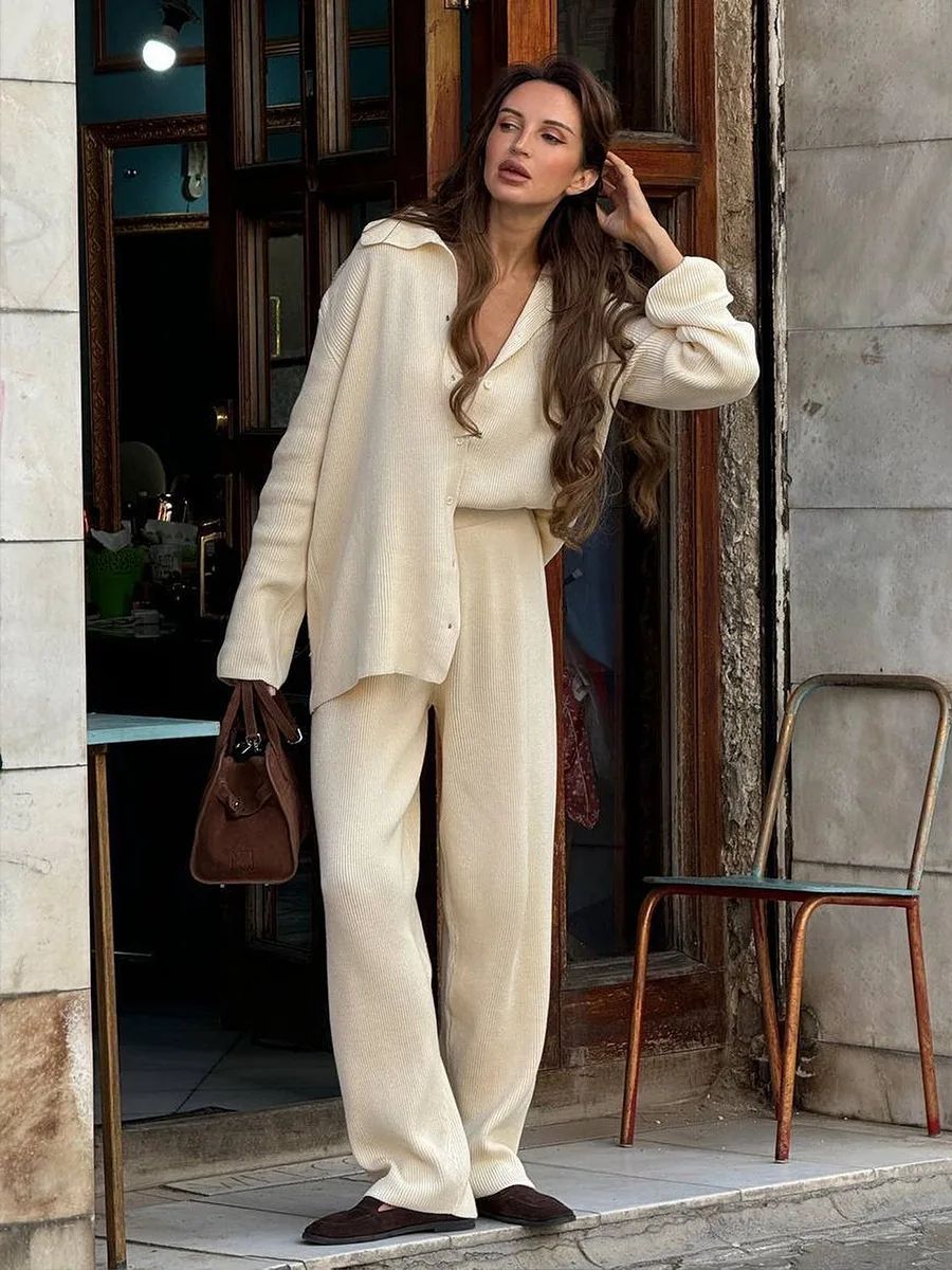 Bornladies Women's Knit Cardigan & Pants Set Autumn Winter Loose Two Piece Office Sweater Outfit apricot 4