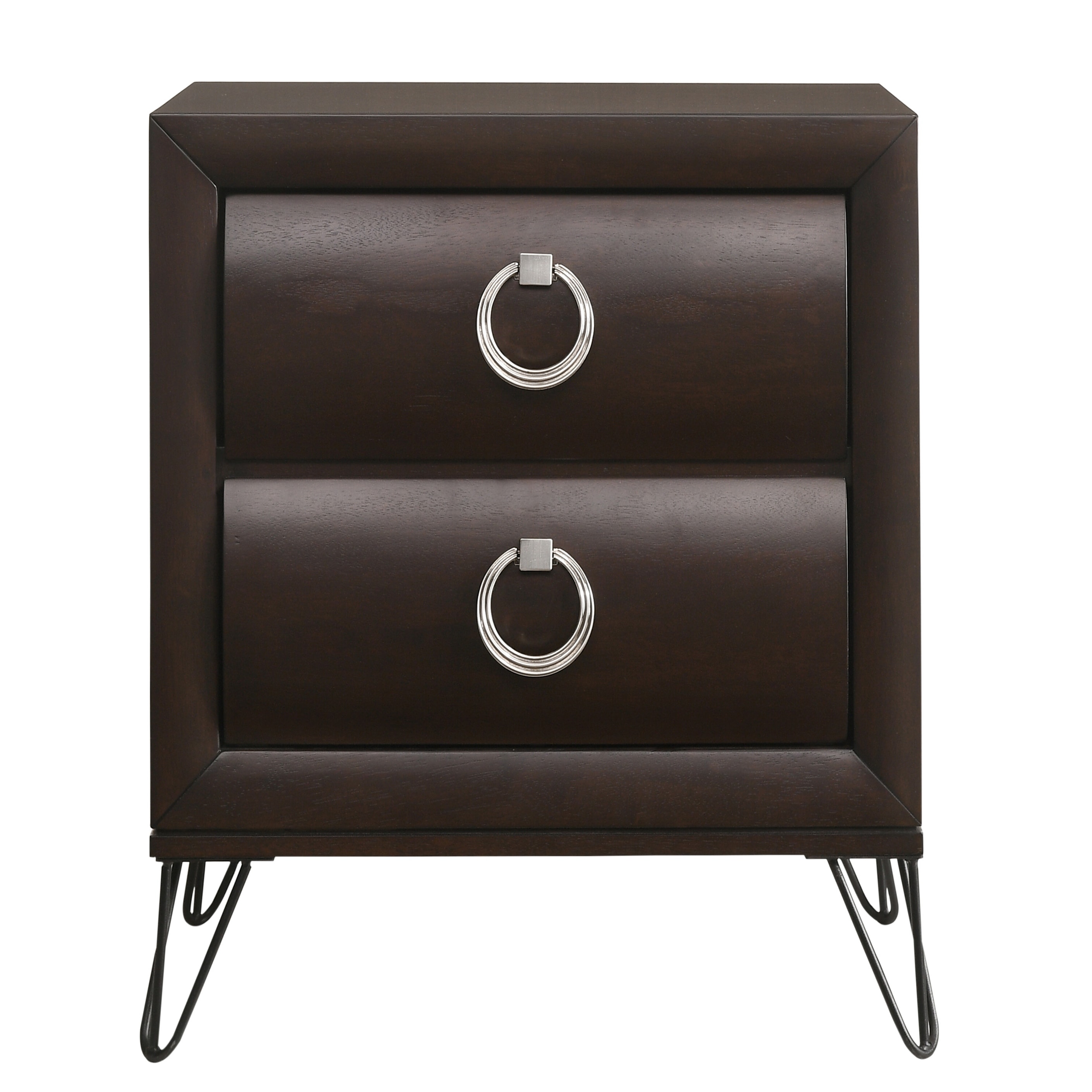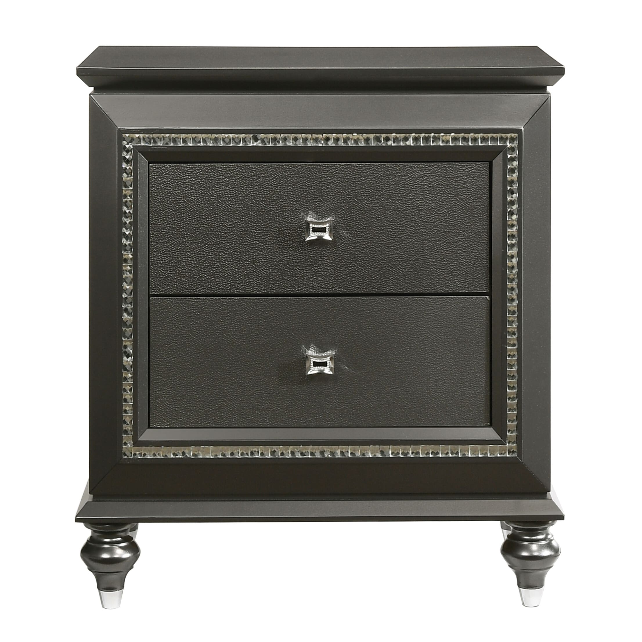 Metallic Grey Nightstand with 2 Drawers