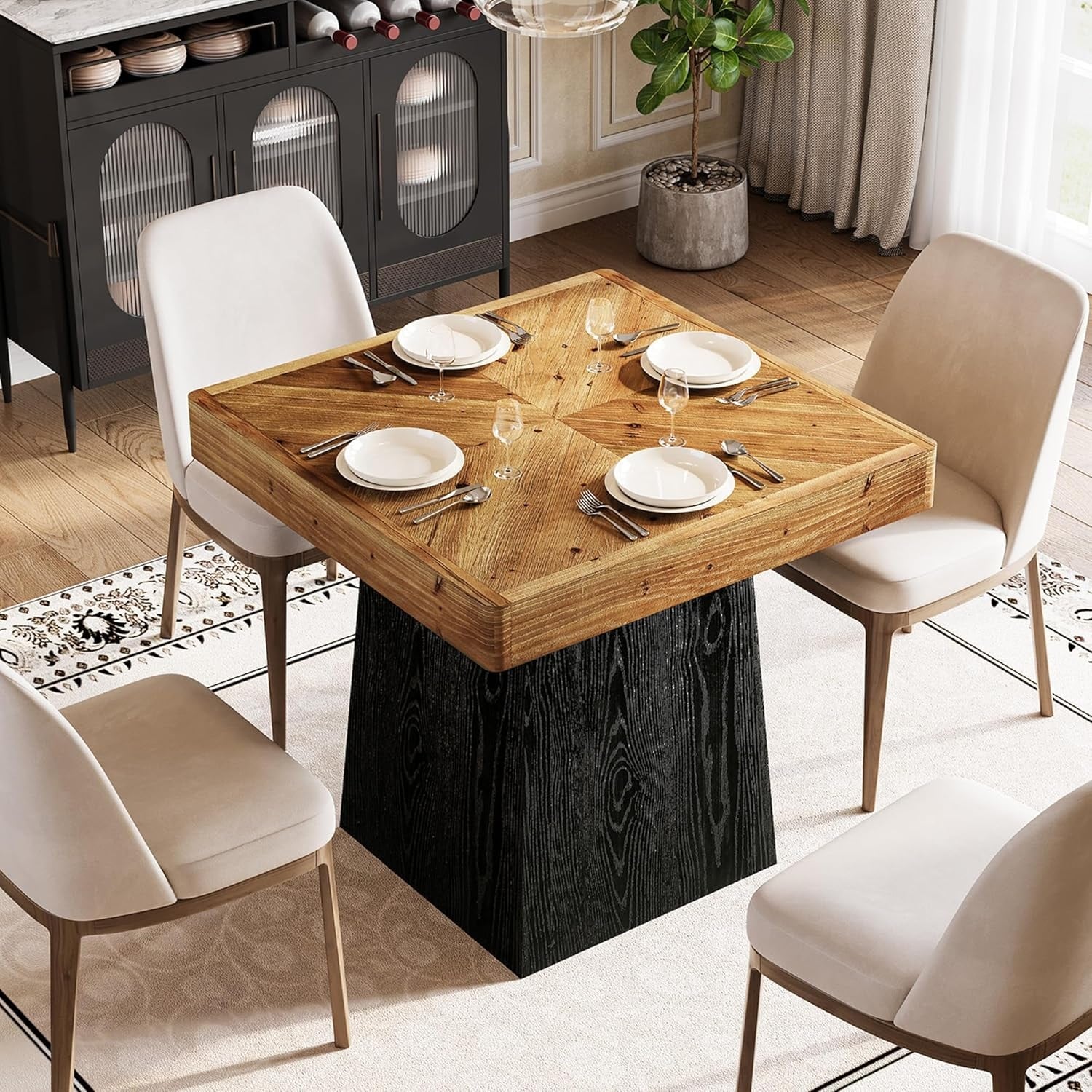 31.5" Solid Wood Square Dining Table for 2-4, Farmhouse Kitchen Dinner Table with Wooden Parquet Top & Tapered Base