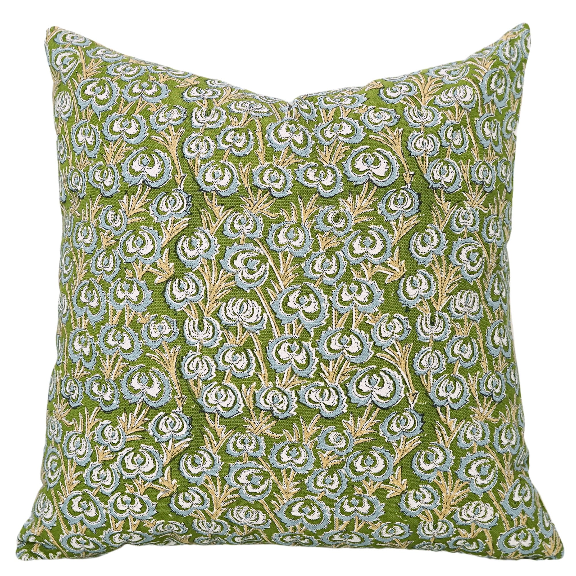 Fabdivine Heavy Linen Block Print Floral Sofa, Couch Decorative Pillow Case, Bael Patra