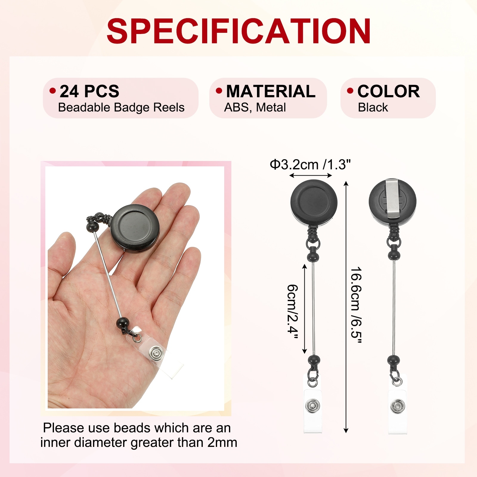 Beadable Badge Reels, Beaded Retractable Clips Holder Badge Reel Bulk Keychain Blank Bar with Belt Clip for Office