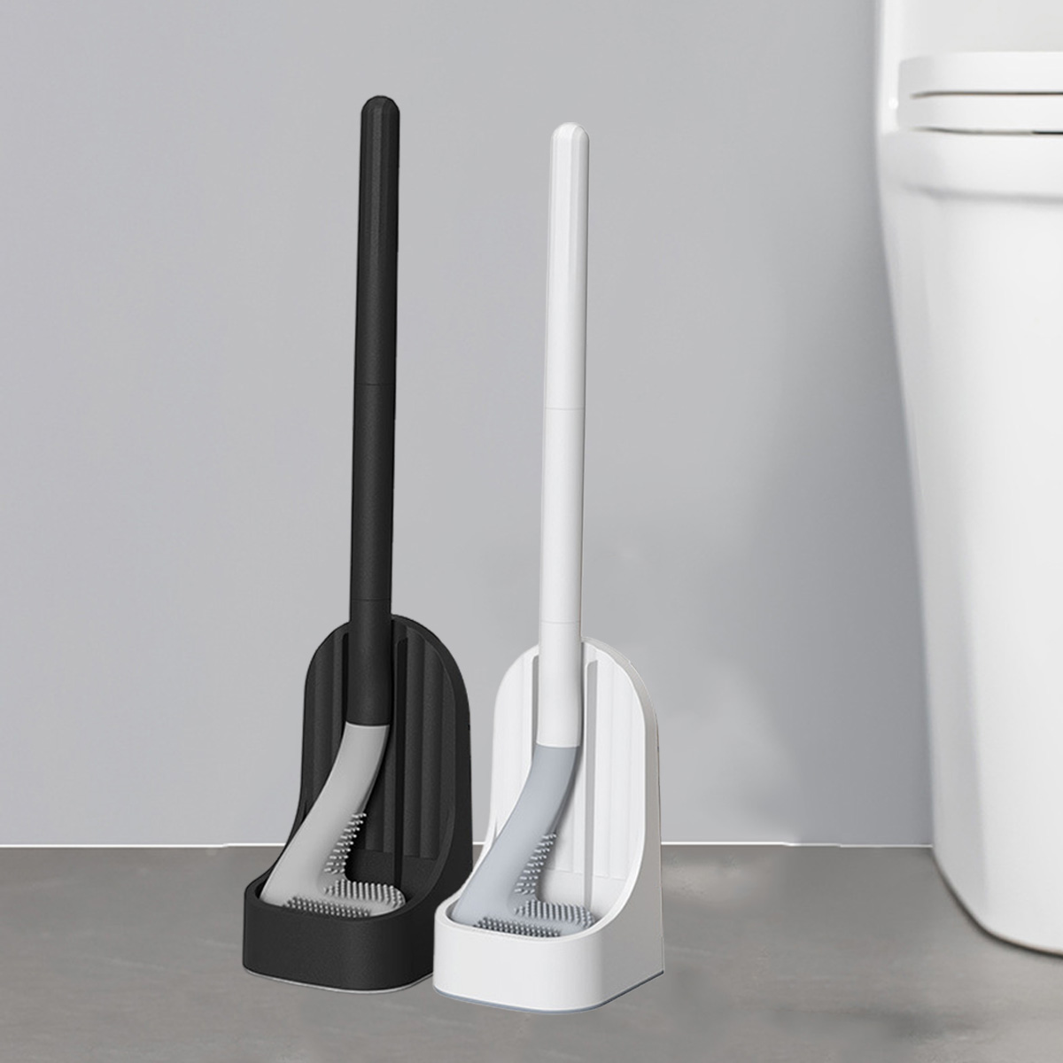 Wall Mounted Toilet Brush With Base, Soft Rubber Brush Head, All Round Cleaning Brush For Bathroom, Quick Drainage Tool black