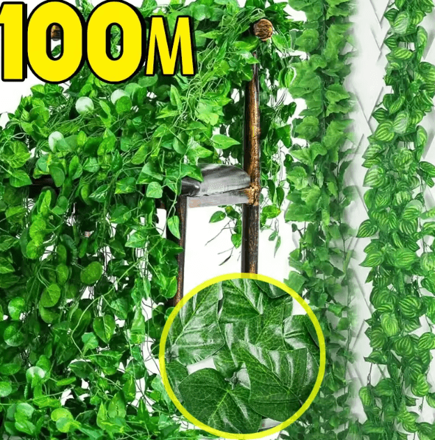 Silk Artificial Ivy Leaf Garland | Lush Wall Hanging Vine & DIY Garden Decor watermelon 50m (25 String)